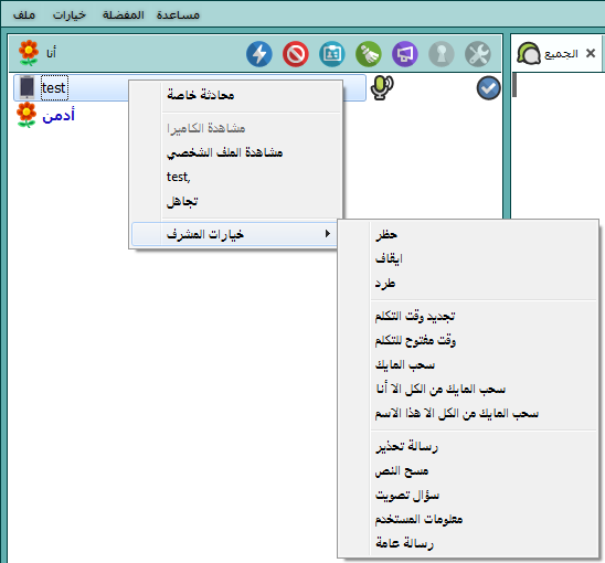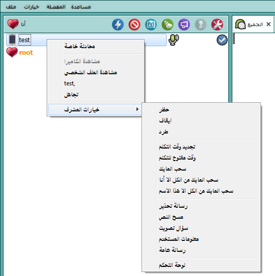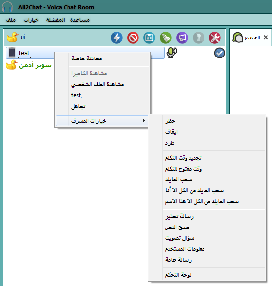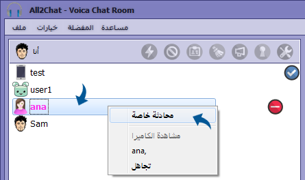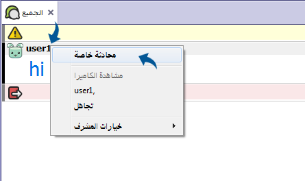 يمكن لاي مستخدم كتابة محادثة خاصة مع أي مستخدم آخر إن كانت صلاحية المحادثة الخاصة مفعله في الغرفة