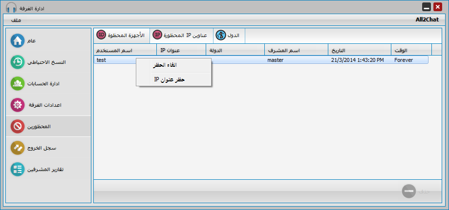 عليه كما يمكن اعطاء حظر او طرد لاسم المستخدم