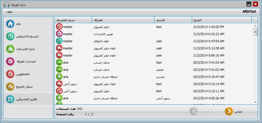 يمكنك قسم ادارة الحسابات من اضافة وتعديل وتحذف اسماء الاعضاء في الغرفة بالاضافة للتحكم بصلاحيات كل الاسماء