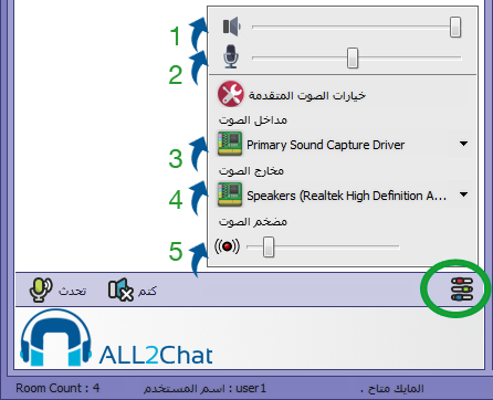 2- لضبط مستوى قوة صوت الميكرفون عند التحدث مع العلم انه البرنامج يتمتع بميزة الضبط التلقائي