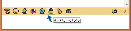 الرفض والسماح باستلام الرسائل الخاصة متاح كل المستخدمين ويتم عن طريق الضغط على زر رفض /سماح الرسائل الخاصة من ضمن ادوات الكتابة