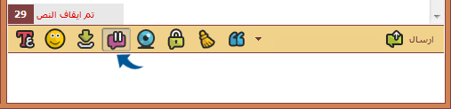 يتم ايقاف الكتابة بالضغط على زر ايقاف الكتابة الموجود ضمن أدوات الكتابة , يقوم البرنامج بتخزين الرسائل التي تم ايقافها ويتم عرضها كامله عند استئناف الكتابة وذلك بالضغط على نفس الزر مرة اخرى
