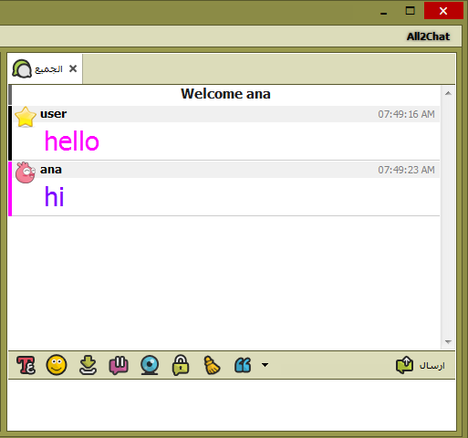 تظهر الرسائل الخاصة المرسلة والمستقبله بأعلى الغرفة جانب ( الجميع ) وكل