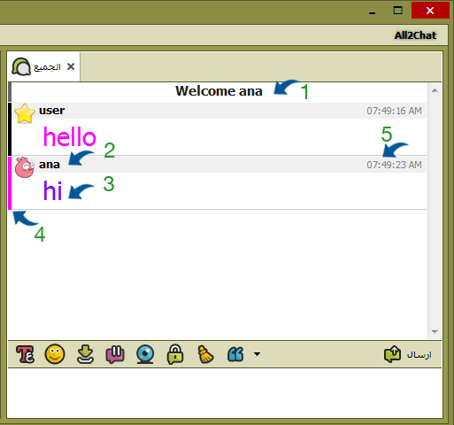 3- نص الرسالة المرسلة ويظهر بلون المستخدم الذي يكتب فيه ويمكن ان يكون غامق ومائل وتحته خط وحجم الخط يمكن لكل مستخدم اخيار الحجم الذي يناسبه